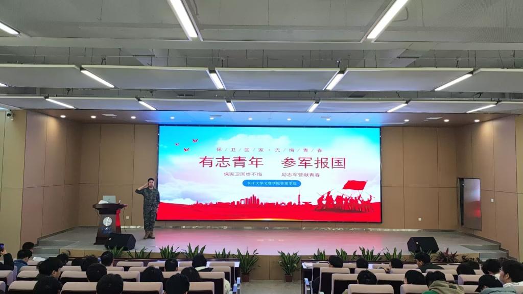 本网讯(通讯员 张晶)风华正茂抒壮志,参军报国正当时。征兵季已经来临,为响应国家号召,加强征兵政策宣传,进一步贯彻落实征兵入伍政策,激发学生的参军入伍热情,管理学院于2月24日下午16:00在B-112学术报告厅开展了征兵政策宣讲活动。