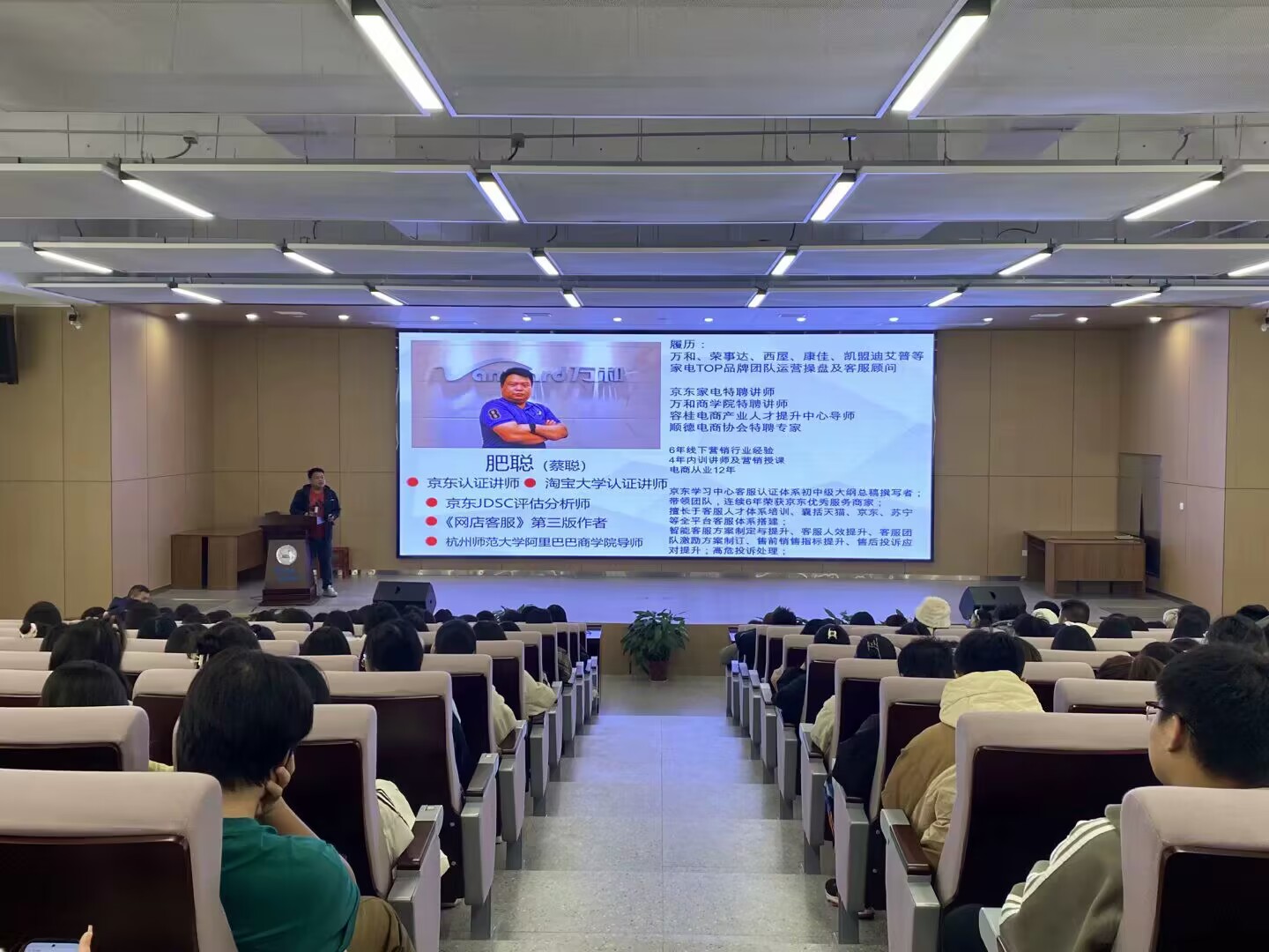 本网讯(通讯员 郭秋茗)为让同学们更深入了解电子商务这门专业,学习相关专业技巧,2023年11月16日下午19:00,管理学院于B-112报告厅召开关于电商销售技巧的讲座,杭州师范大学阿里巴巴商学院导师蔡聪为此次讲座主讲人。