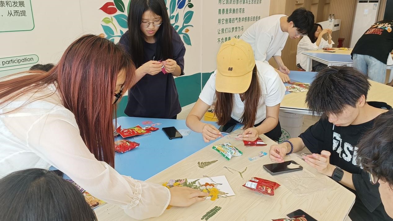 图为同学们正在制作透明干花书签