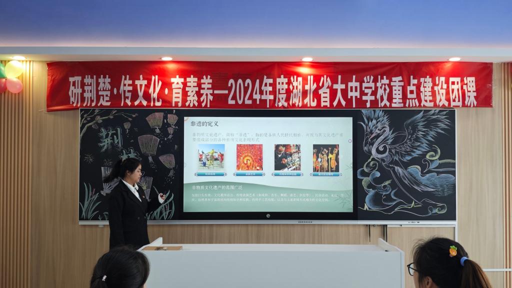 本网讯(通讯员:杨琪)非物质文化遗产是中华优秀传统文化的重要组成部分,是中华文明绵延传承的生动见证,也是连结民族情感、维系国家统一的重要基础。为近距离感受我国非遗瑰宝的独特魅力,进一步了解中华优秀传统文化的内涵,2024年11月21日下午,一场主题为“楚韵回响——荆楚非遗文化的守正创新”的特色微团课活动璀璨启幕,由才华横溢的万学君同学倾情主讲。