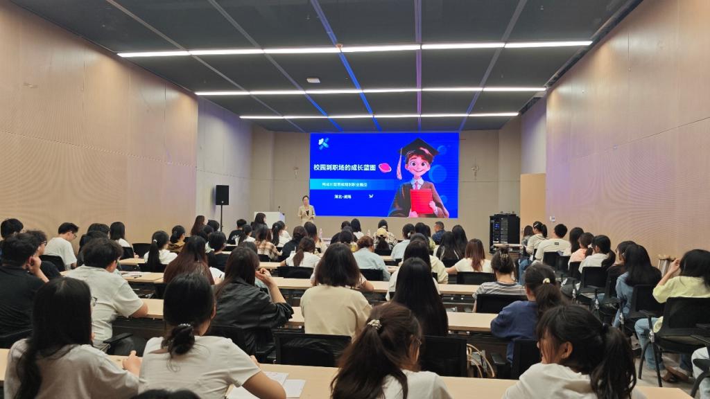 邓秋艳拥有丰富的职场经验与专业的职业规划知识,在讲座中,她围绕四大核心板块展开深度分享,助力学生们更好地完成从校园到职场的角色转变。