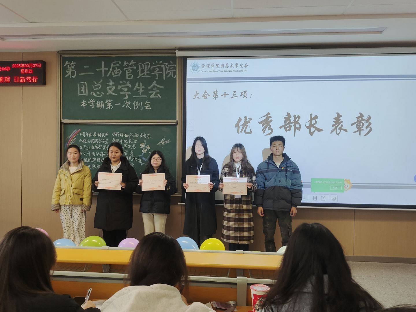 会议最后,对上学期表现突出的优秀部门、优秀部长及优秀干事进行了表彰,激励全体成员以先进为榜样,在新学期的工作中再接再厉、不断进取。