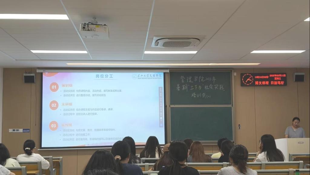本网讯(通讯员 覃雯婕)为扎实推进管理学院2025年暑期“三下乡”社会实践活动高效开展,6月11日,我院组织首次志愿者岗前培训会议,围绕项目规划、岗位分工、活动经验分享及团队组建四项核心内容展开。