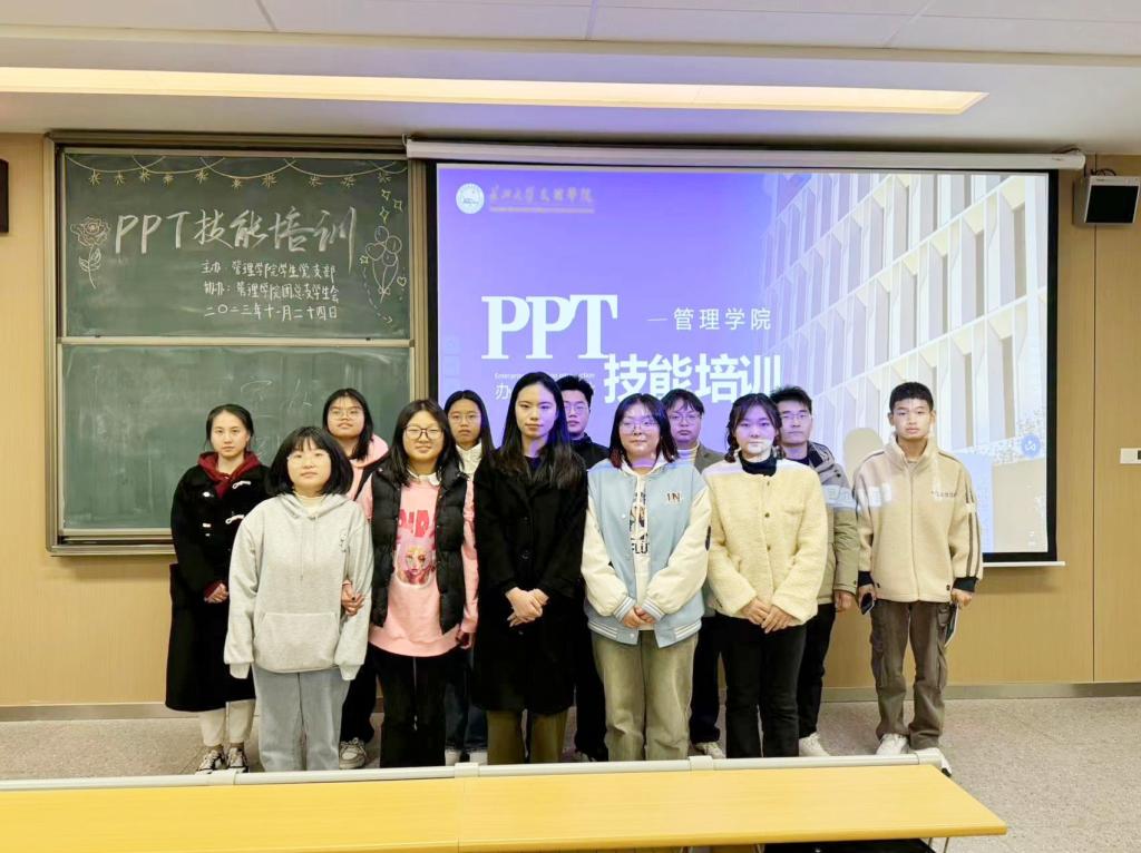 本网讯(通讯员 李宗阳)管理学院于11月24日19:00,在A-408召开创赛PPT培训会。管理学院学生党支部全体党员、管理学院团总支学生会全体成员以及管理学院学生干部参加此次培训。此次培训的目的是为了提高学生干部的创赛PPT制作水平,为更加孵化优质的创新创业大赛作品打下基础。此次培训的主讲人为第十三届湖北省“挑战杯”课外学术科技作品银奖获得者周玲子。