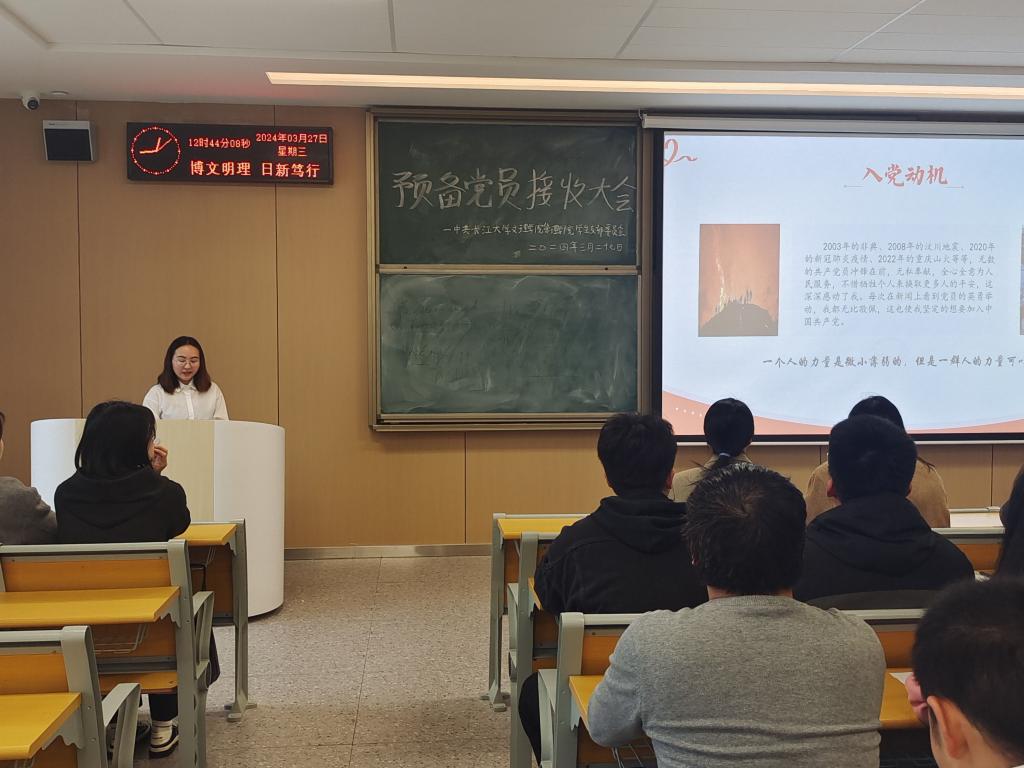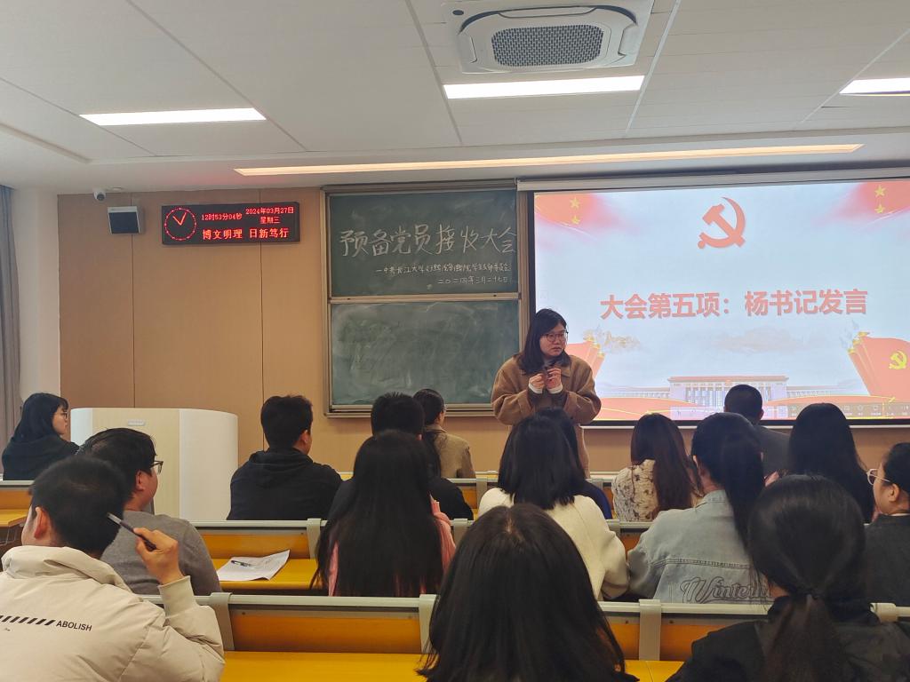 本网讯(通讯员 陈露)2024年3月27日星期三中午12:40,管理学院学生党支部于A-402S召开毕业生预备党员接收大会。大会讨论关于王倩同志接收为预备党员。会议由叶丽丽同志主持,支部在校党员同志及入党介绍人参与此次会议。