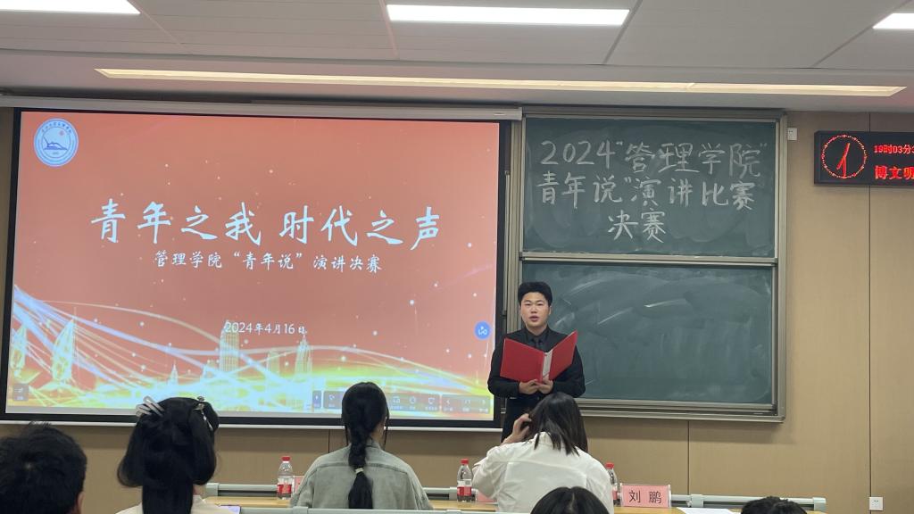 本网讯(通讯员陈露)引领青年学生认识自己、坚定信念、传颂榜样精神,努力成长为有理想、敢担当、能吃苦、肯奋斗的新时代好青年,4月23日晚上管理学院学生党支部在C-423举办青年说演讲比赛决赛,此次比赛由吴鑫瑞同志主持,管理学院学生党支部书记杨琪、辅导员孙晗雪担任评委、10名比赛选手参赛。