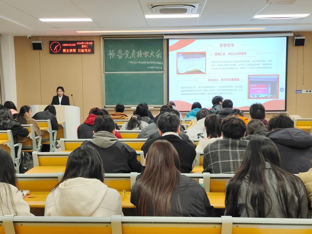本网讯(通讯员 李琪)2024年11月19日下午18:30,管理学院学生党支部在教学楼A402召开预备党员接收大会,讨论廖楚楚等六位同志接收为预备党员。会议由何培茹同志主持,支部其他党员同志及入党介绍人参加此次会议。