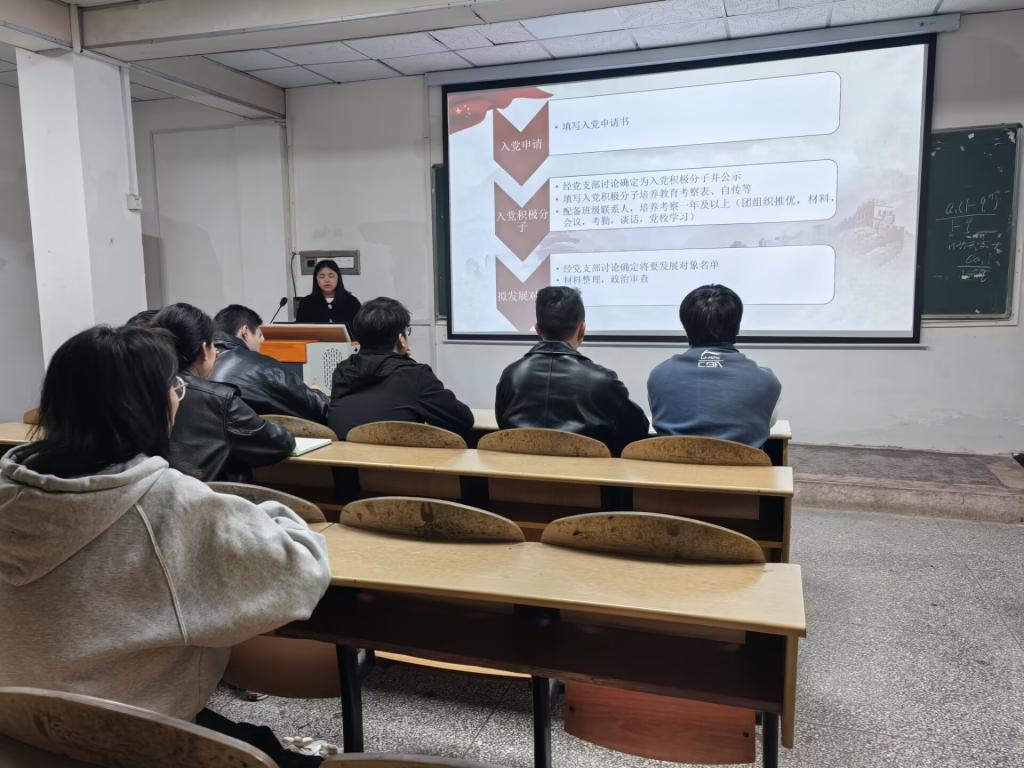 会上,万学君同志围绕入党流程的规范性和材料撰写的具体要求展开详细说明,重点阐释了班级联系人的岗位职责。在入党流程方面,她强调,班级联系人应准确、清晰地向入党积极分子介绍入党的各阶段步骤,包括从入党积极分子、拟发展对象、发展对象到预备党员及正式党员的全过程,并鼓励引导大家积极参与学院组织的各项实践活动。在材料撰写方面,万学君同志结合常见案例,针对入党申请书、思想汇报及党章学习心得等材料中易出现的问题进行了细致剖析,提醒班级联系人要严格把关,督促积极分子规范书写、按时提交。