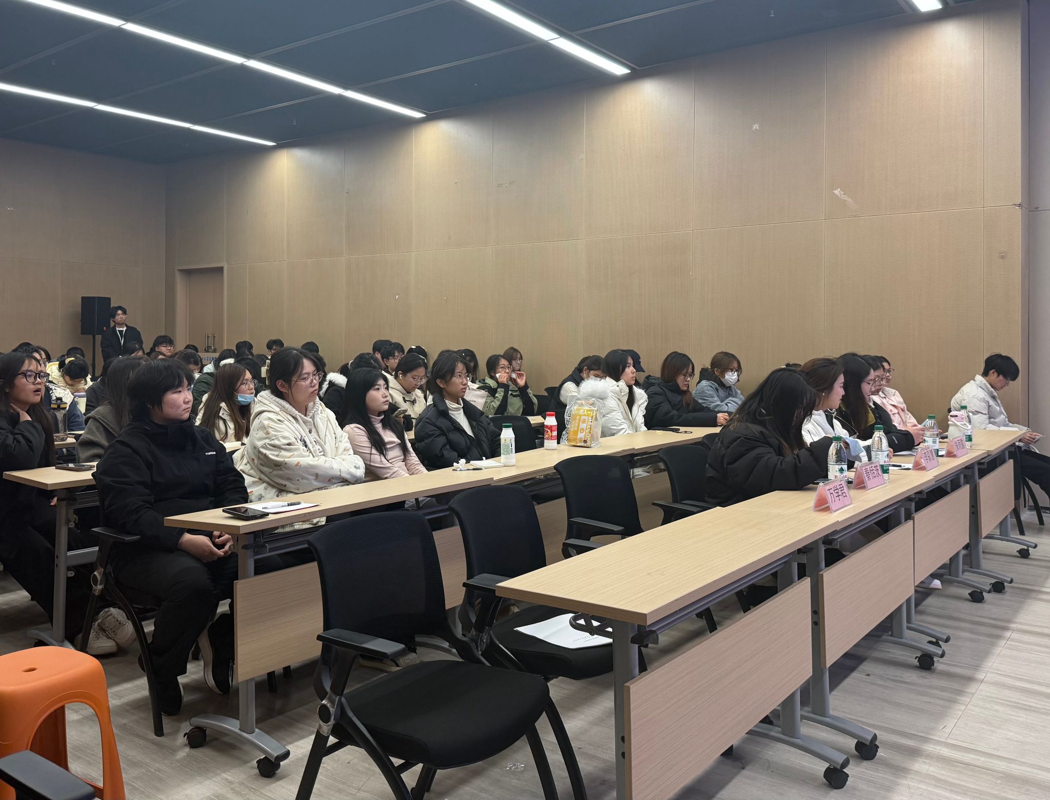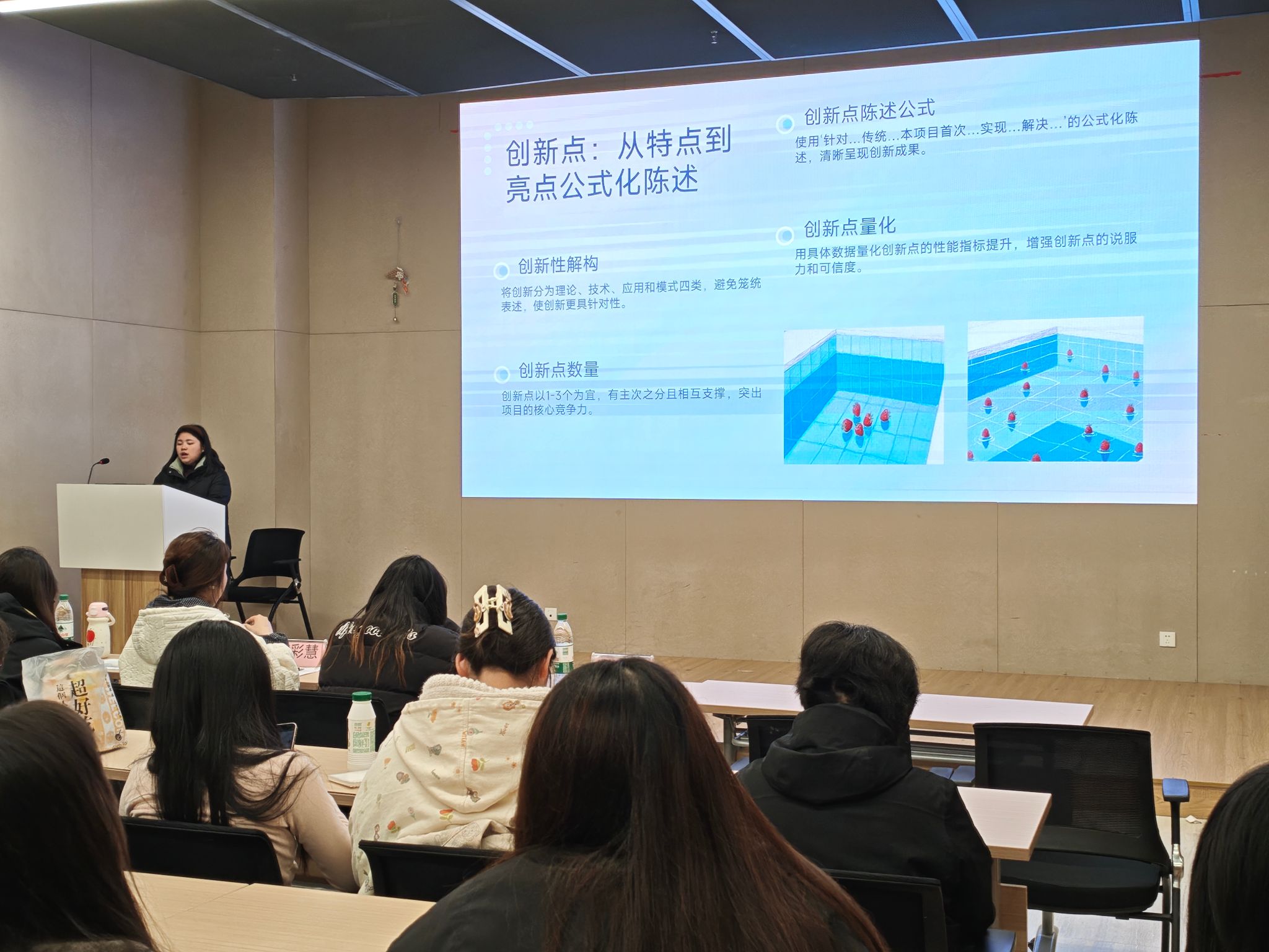 交流会上,党支部特别选派了4名在往届A类竞赛中荣获省级及以上奖项的学生党支部成员担任主讲人。她们立足自身参赛经历,聚焦赛事核心要求、团队协作、项目孵化、材料精修、答辩展示等关键环节,进行了深入细致的经验分享与技巧传授。分享内容务实具体,涵盖商业逻辑构建、创新点挖掘、计划书撰写规范、路演表现力提升等实用主题,为现场同学提供了极具可操作性的备赛指南,充分展现了学生党员在学术创新领域的引领与担当。