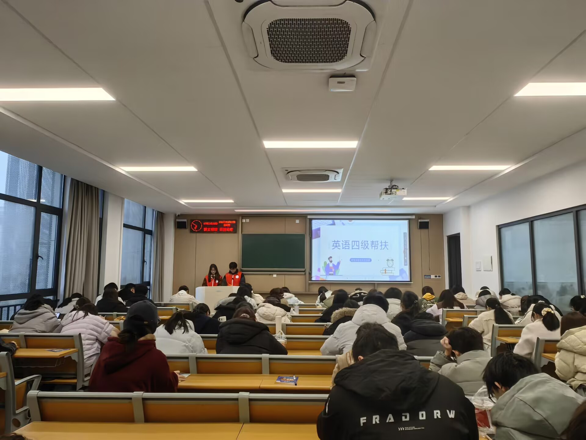 活动首周,支部党员与学生干部每日清晨准时到达对接班级,协助维持早自习秩序,并组织英语单词、词组听写。听写内容紧密结合四六级考试大纲,涵盖高频词汇与常用词组,并在听写结束后及时进行批改与讲解,帮助同学们查漏补缺,强化记忆效果。