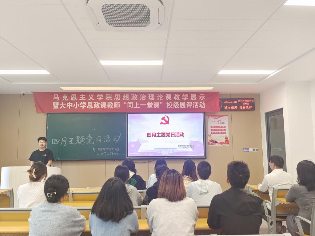本网讯(通讯员陈露)管理学院学生党支部于4月19日中午12:30,在A-103S开展四月主题党日活动,管理学院学生党支部全体党员同志参加。会议由吴鑫瑞同志主持。
