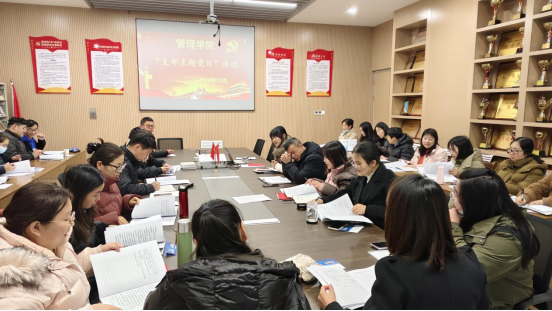 12月12日我院教工党支部在管理学院会议室532开展了12月份政治学习和“支部主题党日”活动,本次会议由教工党支部书记杨璐老师主持,支部全体教职工参加。