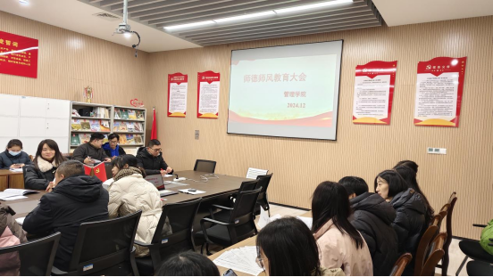 其次,为进一步强化师德师风建设,提升教师队伍的整体素质,营造风清气正的育人环境,管理学院教工党支部进行了师德师风专题理论学习。全体教师党员参与,深入学习习近平总书记在全国教育大会上的讲话,并结合学院实际情况做出重点要求。通过学习,教师们深刻认识到师德师风建设的重要性,增强了责任感和使命感。同时,教师们还交流了各自在教育教学中的心得体会,分享了在师德师风建设方面的经验和做法。