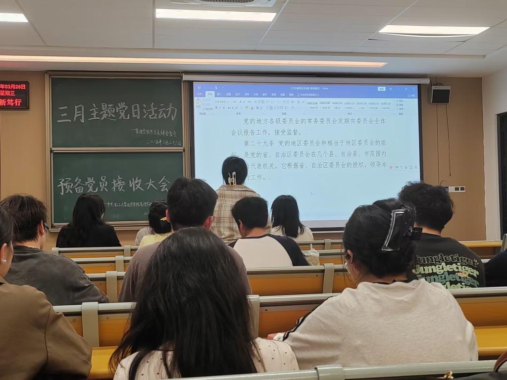 本网讯(通讯员吴宝兰)管理学院学生党支部于3月26日晚19:00,在教学楼A402召开三月主题党日活动,管理学院全体党员参加。此次会议的主要内容是学习《中国共产党章程》(第四章),学习习近平总书记在看望参加政协会议的民盟民进教育界委员时的重要讲话。会议由李琪同志主持。