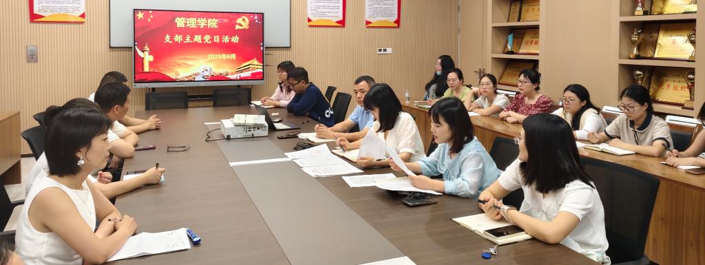 本网讯(通讯员 张勤)6月19日下午,我院教工党支部在管理学院会议室532开展了6月份“支部主题党日”活动,本次会议由教工党支部书记杨璐主持,管理学院全体党员教师参加。