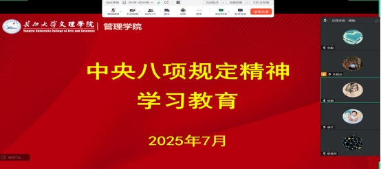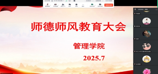 本网讯(通讯员 张勤)7月10日下午,我院教工党支部在腾讯会议开展了线上7月份“支部主题党日”活动,本次会议由党总支书记胡沿林主持,管理学院全体教职工参加。