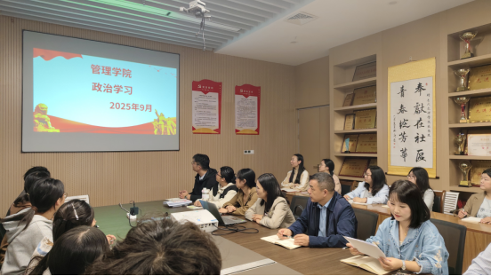 本网讯(通讯员 张勤)9月18日下午,我院教工党支部在管理学院会议室532开展了9月份政治学习和“支部主题党日”活动,本次会议由教工党支部书记杨璐主持,管理学院全体教职工参加。