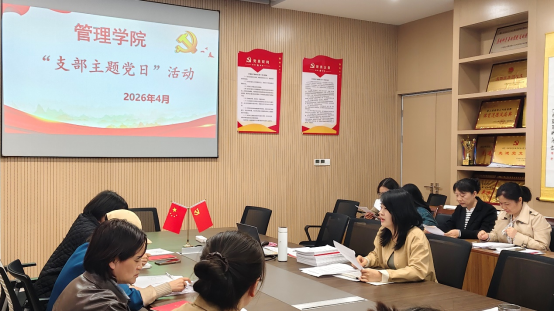 本网讯(通讯员 周丹)4月23日下午,我院教工党支部在管理学院会议室532开展了2026年度4月份政治学习和“支部主题党日”活动,本次会议由我院党总支书记胡沿林主持,管理学院全体教职工参加。