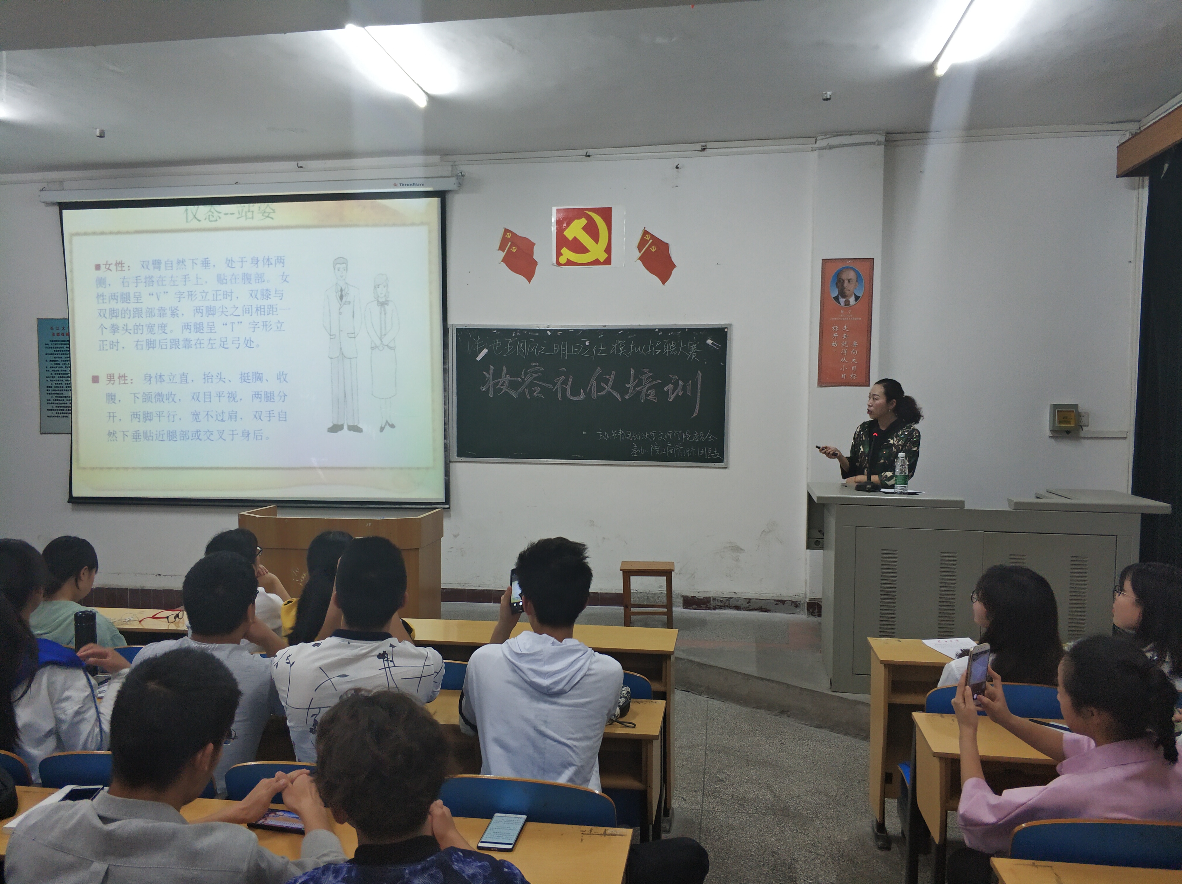 2018年4月28日19:00于一教414开展了就业礼仪妆容培训,本次培训活动是针对15级2019届毕业生以及系团总支承办的科技文化节“明日之仕”模拟招聘大赛复赛选手。培训主讲人是我系辅导员涂晓洁老师。