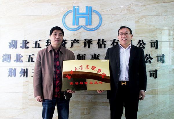 我院副院长郭睦庚(左)与湖北五环会计事务有限公司董事长共同为基地揭牌