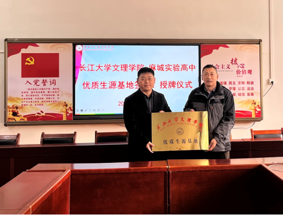 曹骥代表学校与麻城实验高中签订优质生源基地共建协议,并举行授牌仪式。