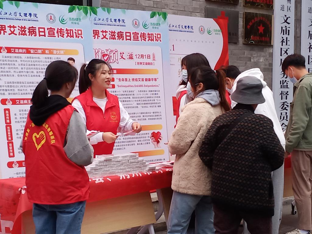 本网讯(通讯员 夏欣)12月1日是第34个“世界艾滋病日”,为推动大众对艾滋病有较为正确的了解,11月25日青春健康志愿者服务队分别在文庙社区、城中校区开展了预防艾滋病主题宣传活动,号召和呼吁广大居民和在校青年大学生用科学、理性的态度正确认识艾滋病。