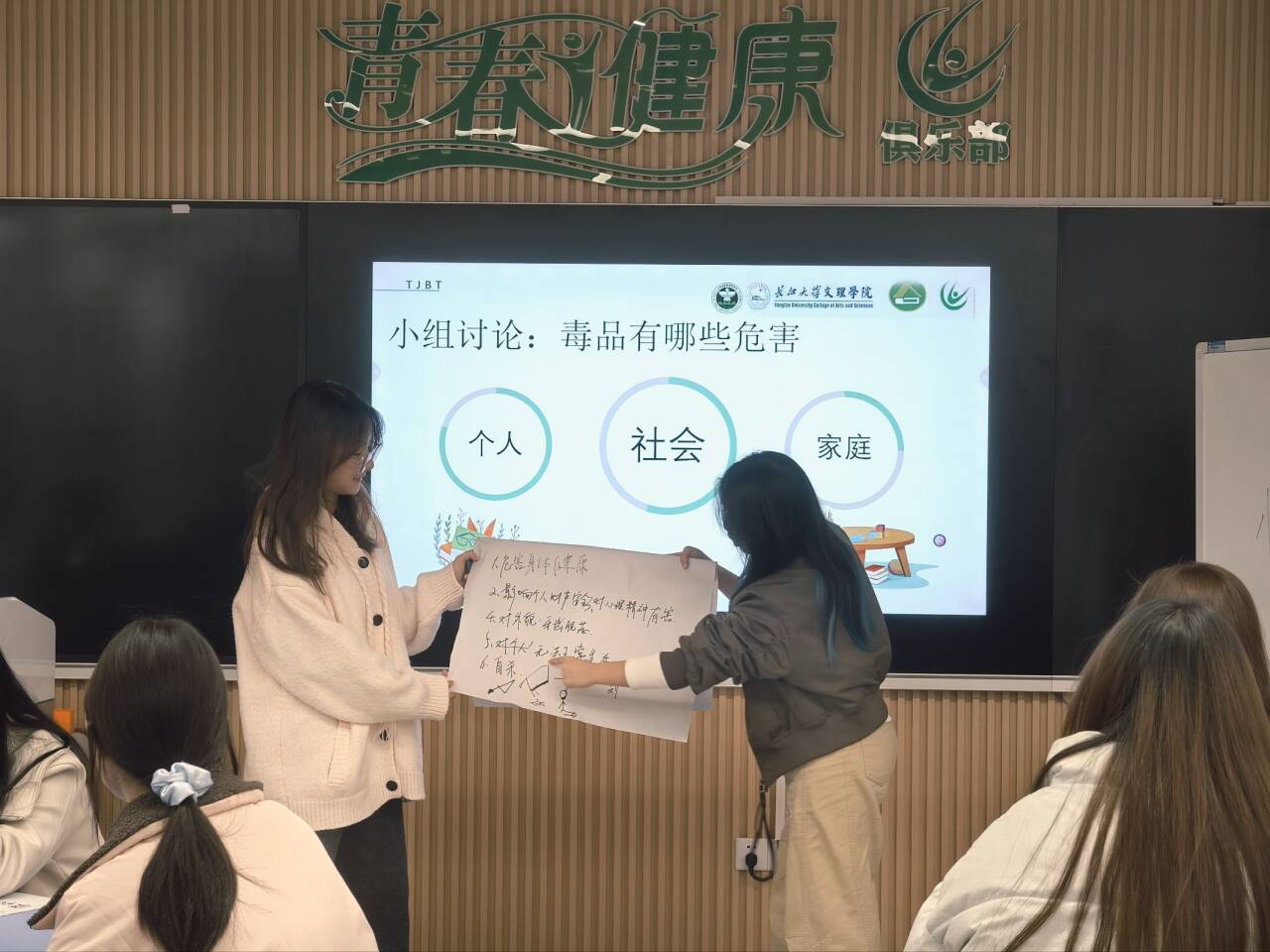 核心环节中,杨沥组织各小组围绕毒品危害展开讨论,各组将观点整理书写后依次上台分享。通过互动交流,同学们深刻认清毒品对个人、家庭、社会的严重危害,禁毒观念进一步深入人心。