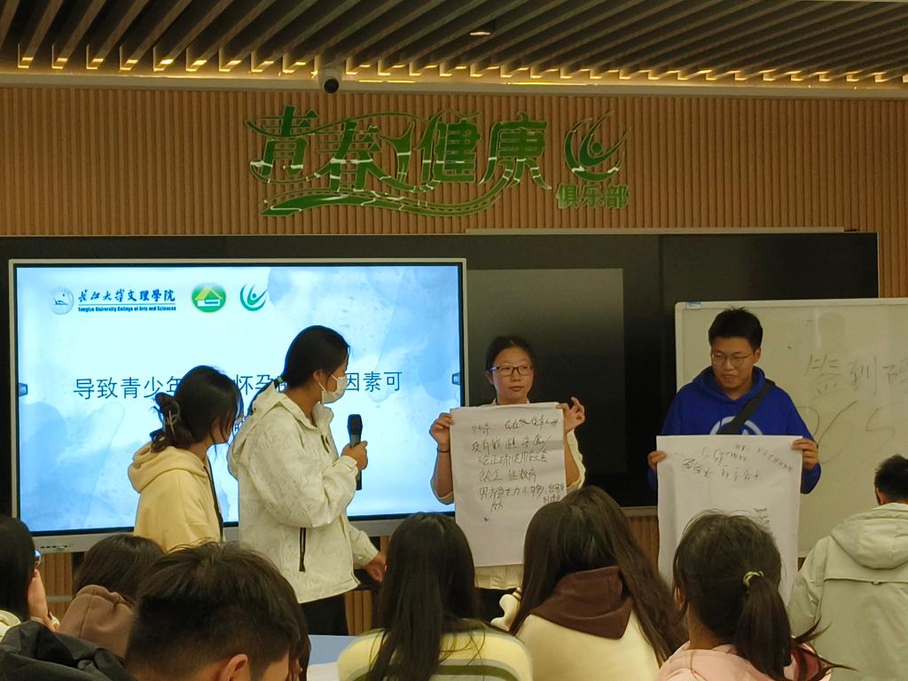 本网讯(通讯员 田曼丽)青春健康同伴社于2023年11月09日晚上7点在yl7703永利集团青春健康同伴基地开展了以“预防意外怀孕”为主题的同伴教育活动。本次活动由向梅主持,共计45余人参与。