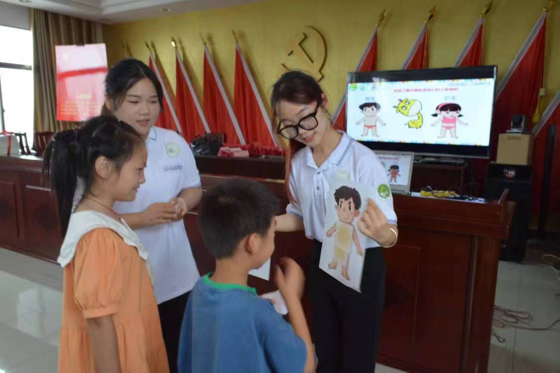 随后,志愿团队成员根据自身专业特长,精心设计了涵盖互动小游戏,科普小视频,精彩绘本等以“预防性侵”为主要内容的多元化课程——本次活动旨在提高性知识在农村地区的普及率,增强小朋友的性意识。青年志愿者们以互动式课堂与小朋友们深入交流,让“性”话题以新颖的方式呈现出来。课堂上,孩子们对相关问题积极思考,参与活动跃跃欲试,与大学生志愿者们的互动中充满了欢声笑语。