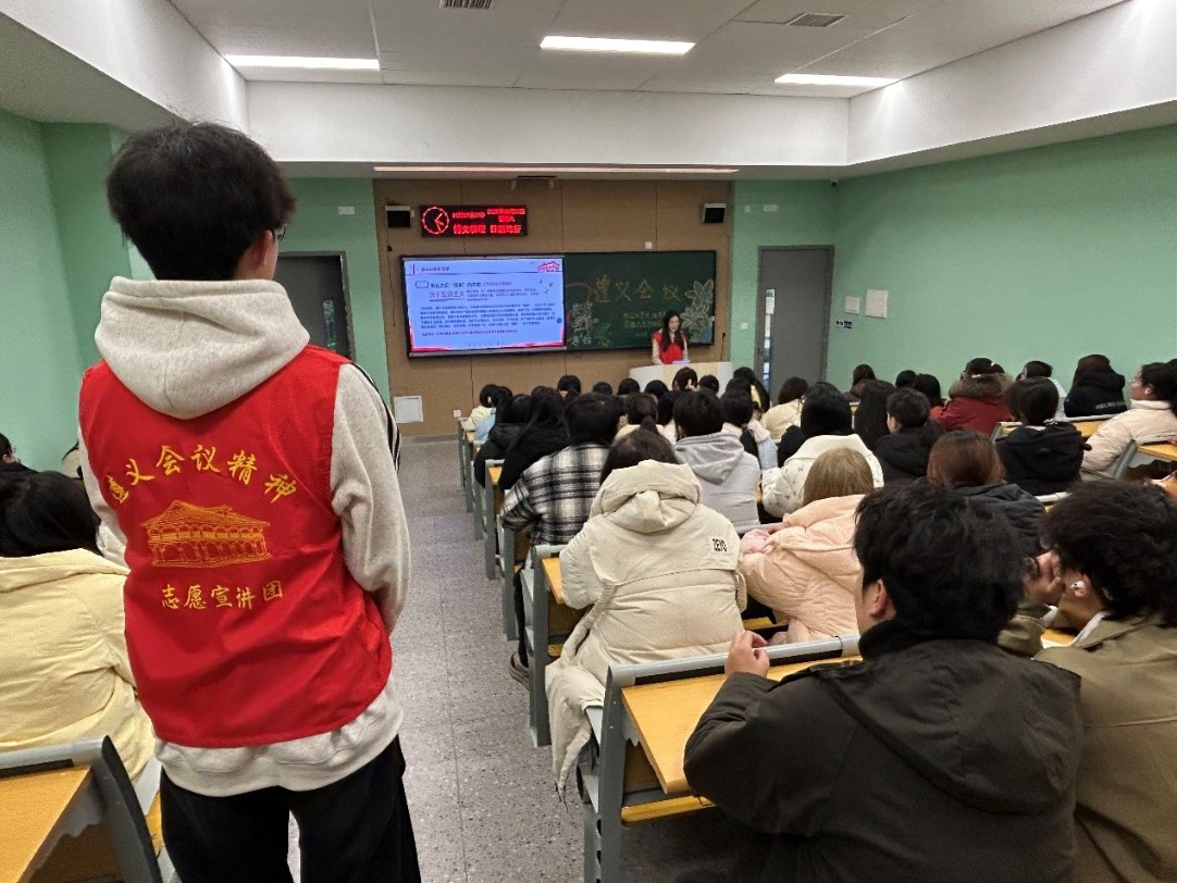 本次志愿宣讲活动由志愿者邵梦萍主讲,服务队成员及40余名学生代表齐聚一堂,共同学习遵义会议精神,在浓厚的学习氛围里,众人共同汲取精神力量 。
