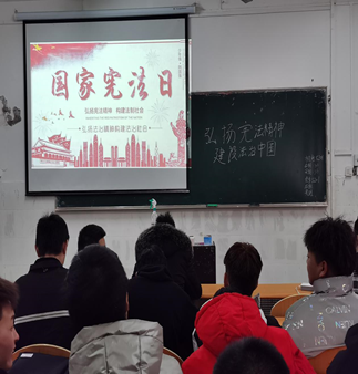 本网讯(学生记者周海静)为弘扬宪法精神,在国家宪法日到来之际,12月5日,高职部各个班级开展以“学宪法,讲宪法”为主题的宪法宣传日讲座。本次班会由各班团支书组织。