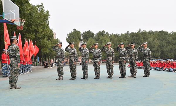 承训部队官兵、我系负责新生军训的学生党支部书记、全体辅导员和学生工作处主要负责人、全体高职部新生参加仪式。