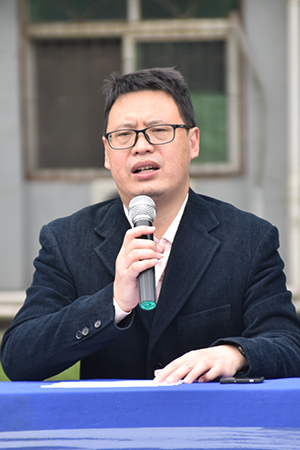 党委副书记孙细望在授旗仪式上讲话。他说,军训课是新生们入学的第一课,希望同学们明确军训的重大意义,并对全体参训学生提出三点希望:一是要发扬不怕苦、不怕累的精神;二是要发扬集体主义精神,树立团结奋斗的观念;三是要做到尊敬教官,服从命令,一切行动听指挥。他希望学生工作处和高职部加强组织领导,既各司其职,又形成合力,高标准做好今年专科学生军训工作,为学生和军训教官做好服务与保障,确保军训任务顺利完成。