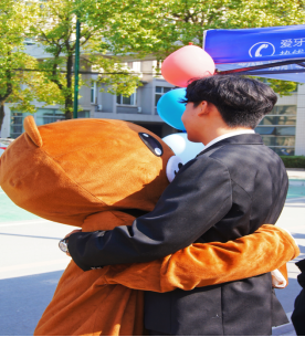 并且在本次活动中,由同学们装扮的动物玩偶,给参与的同学送去一个“爱的抱抱”,给予同学们爱和鼓舞。一个简单的拥抱,让参与拥抱的同学们感到无比的幸福和温暖,同学们纷纷拍照留念着温馨时刻,大家用行动、微笑感染周围的每位同学,温馨和快乐洋溢在同学们的脸上,活动的过程让同学们获得快乐的同时,更传达了“爱自己,爱他人”的美好理念。