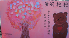 活动包括与“玩偶”拥抱并合影、撰写活动卡片粘贴展板上表达感恩或祝福两个部分。活动期间,众多系部同学积极参与,纷纷与玩偶献上“爱的抱抱”,并写下对生活、对未来、对同学、对陌生人的祝福。很多同学收到了来自陌生人的“爱意”。