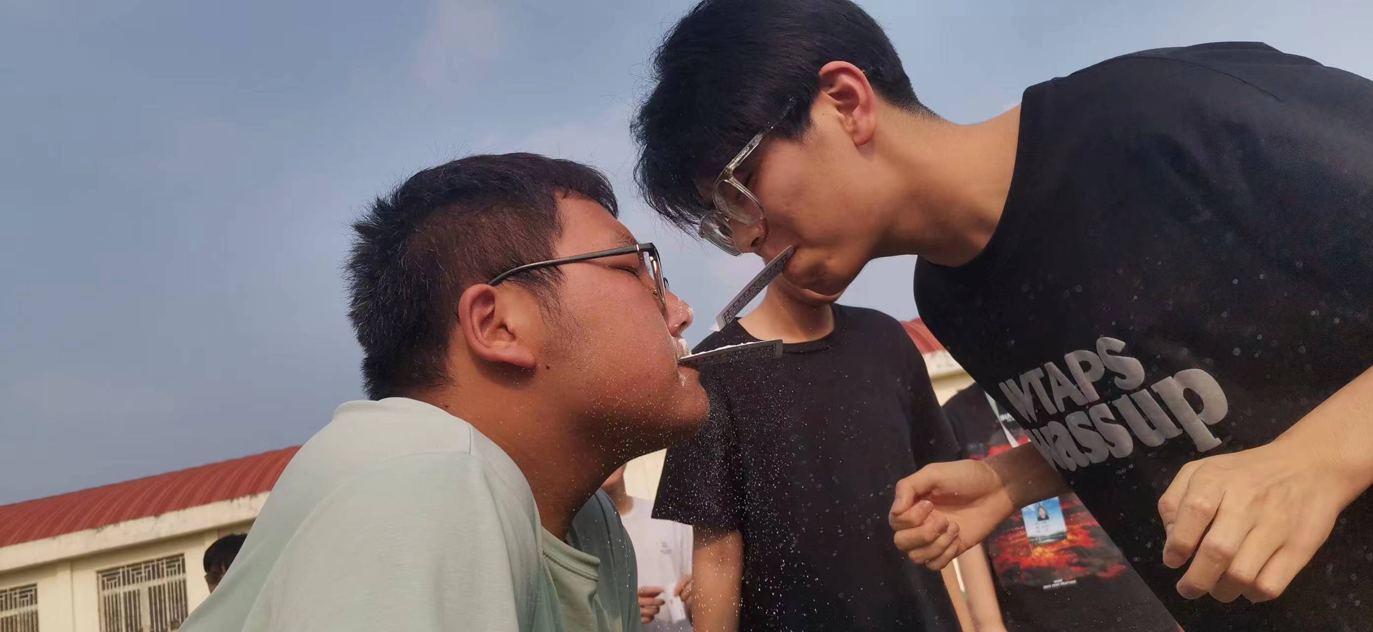 (同学们正在进行面粉接力比赛)