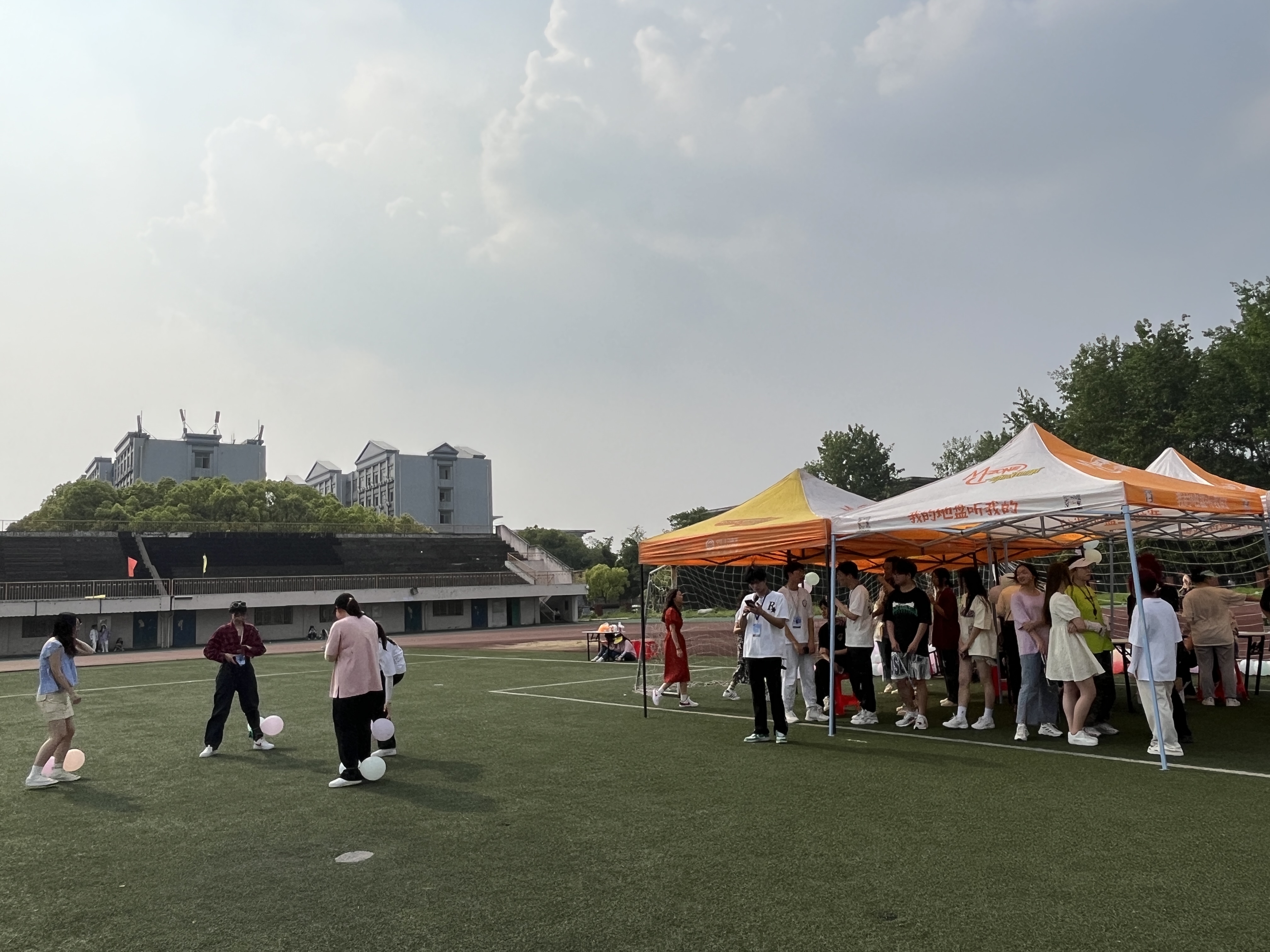 (同学们正在进行踩气球比赛)