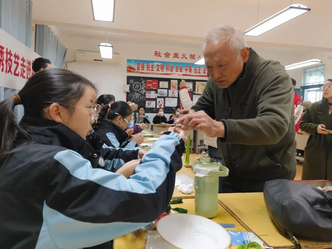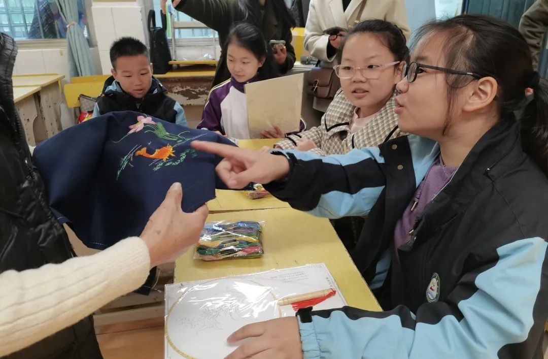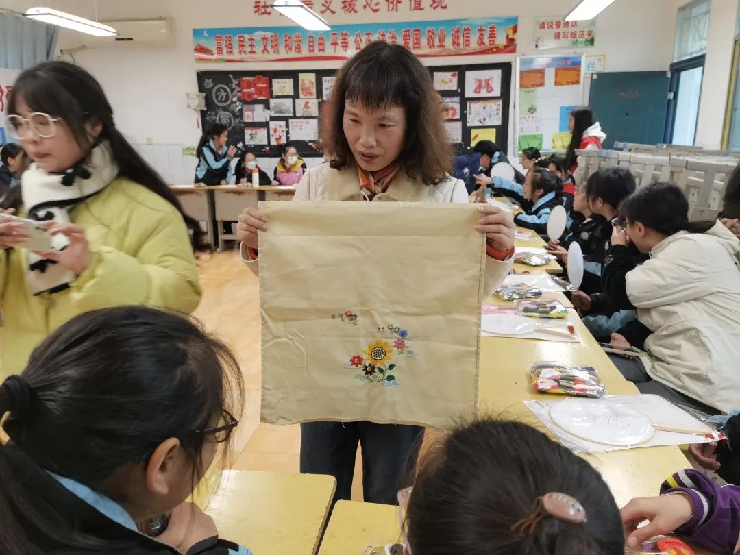 上午,汉绣省级代表性传承人张先松、市级代表性传承人廖伶俐带着他们的徒弟在荆州市实验中学附属小学开展了“非遗进校园,文化润童心”汉绣培训工作,对30余名小学生教授汉绣知识和手工技巧。