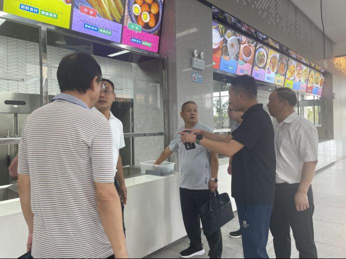 今天(8月30日)上午,荆州市教育局后勤服务中心洪松一行对我院开展2023年秋季开学食品安全专项检查。后勤保障处处长王震,部门相关工作负责人陪同检查。