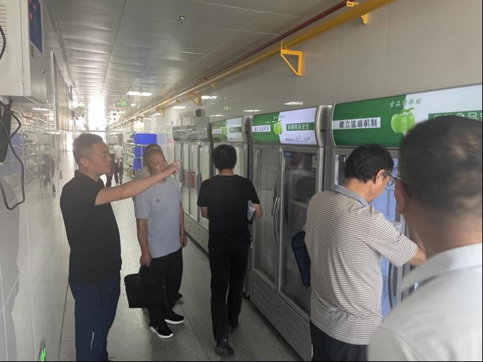 检查组领导检查了我院食品安全制度、管理工作执行、场所物品清洁、设施设备运转、食品原料合规、从业人员健康、人员规范操作等一系列情况。确保秋季开学食品安全工作做实做细落实到位。