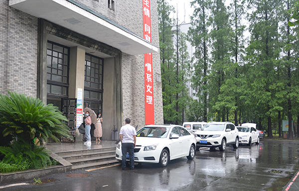 到达学校,已接近中午12点,风雨交加。但甘思佳和妈妈并没感到孤单,系里的党总支书记、“一对一”服务的老师,为她们撑着伞、拖着行李箱,引导她们直接到指定的固定场所快捷办理毕业手续。