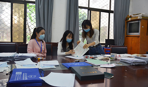 在人文系指定场所,毕业班辅导员黄婷婷正在有序办理各项手续。上交就业协议书、体检表等相关资料,甘思佳按照规定流程,逐项办理,胡老师从旁指引。“请递交核酸检测收费票据,学院统一报销。”黄老师一句温馨提醒,让学生和静静守候在指定区域的家长同时露出了笑容。这份微笑中,不仅包含了喜悦和感动,更表达出对相关工作的肯定和满意。紧接着,黄老师发放毕业证、学位证和就业报到证。同时,向学生发放崭新的资料袋、行李袋,方便学生存放资料和行李。整个流程办理完毕,只用了不到5分钟。