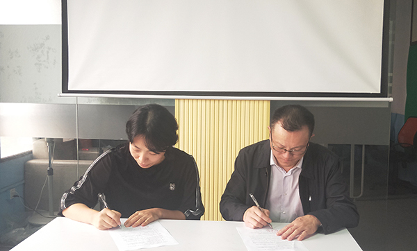 王文凯(左)与广州市荔湾区博雅学校校长签订合作协议