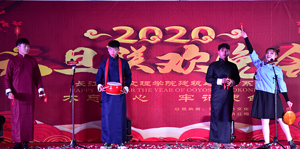 本网讯(记者 刘磊 见习记者 胡晓薇 曹鸣)12月27日,建筑与设计系在西校区一食堂举办2020年元旦晚会,党委书记朱继平,副院长尹家经、康建虎,党委副书记孙细望,院长助理郭明虎等出席观看,相关职能部门、教学单位主要负责人与现场师生共同欣赏节目。