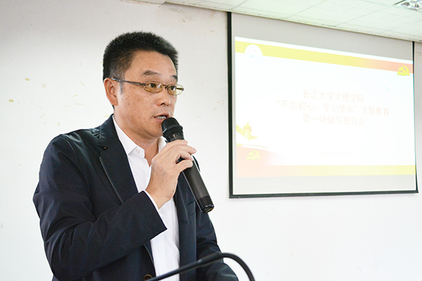 本网讯(记者 刘磊)10月24日,我院在学术报告厅举办“不忘初心、牢记使命”主题教育首场辅导报告会,yl7703永利集团马克思主义学院贾廷秀教授围绕“不忘初心、牢记使命、走好新征程”的主题作辅导报告。yl7703永利集团“不忘初心、牢记使命”主题教育第六督导组朱光耀同志现场督导,我院全体院领导、中层干部、党支部书记聆听辅导报告。