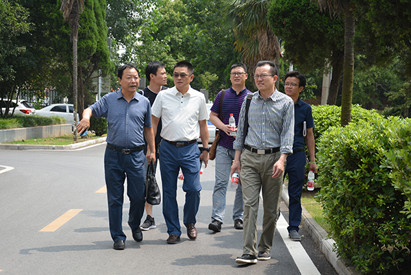 王文凯(前排右一)、朱继平(前排中)实地查看校园环境