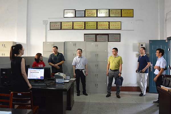 王文凯(左四)、朱继平(右三)走访教学系部