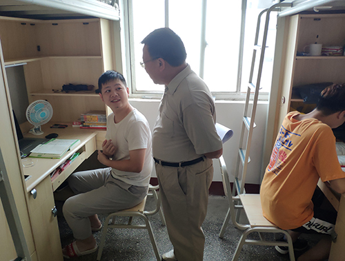 7月14日,经法系学工人员在该系主要负责人带领下,深入寝室看望暑期留校学生。每到一间寝室,老师们都叮嘱学生遵守学院安全规定,提高安全防范意识,并细致检查室内设施,及时排查安全隐患。