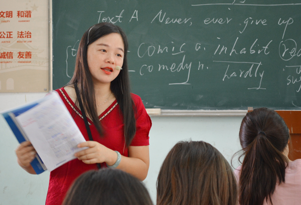 英语专业老师付春霞在上《大学英语》课