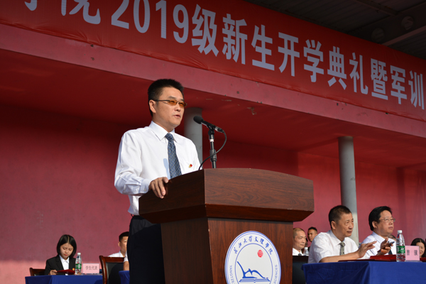 本网讯(记者 吴秀丽)今天(9月21日)上午,我院2019级新生开学典礼在西校区田径运动场举行,近两千名新生参加开学典礼。荆州区武装部政委刘辛上校,院长王文凯、副院长尹家经、党委副书记孙细望、院长助理曹骥、组织员李琴,以及各教学单位、职能部门负责人、教师代表等出席开学典礼,党委书记朱继平主持典礼。